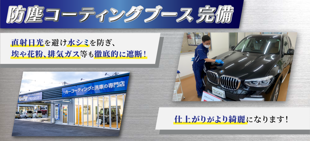 また、細かい埃や花粉、排気ガス等を遮断するスペースで研磨やコーティングを施工することで、仕上がりがよりキレイになります!