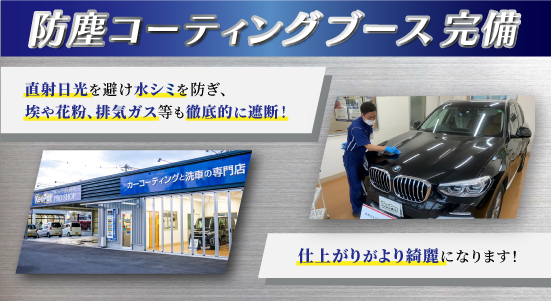 当店は専用の防塵コーティングブースを完備しており、細かい埃や日光を遮断した環境下で作業を実施いたします!